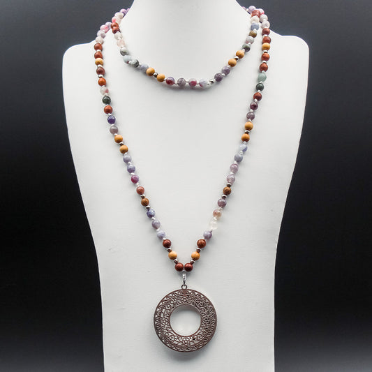 Mala - BOIS DE SANTAL et AGATE pendentif mandala