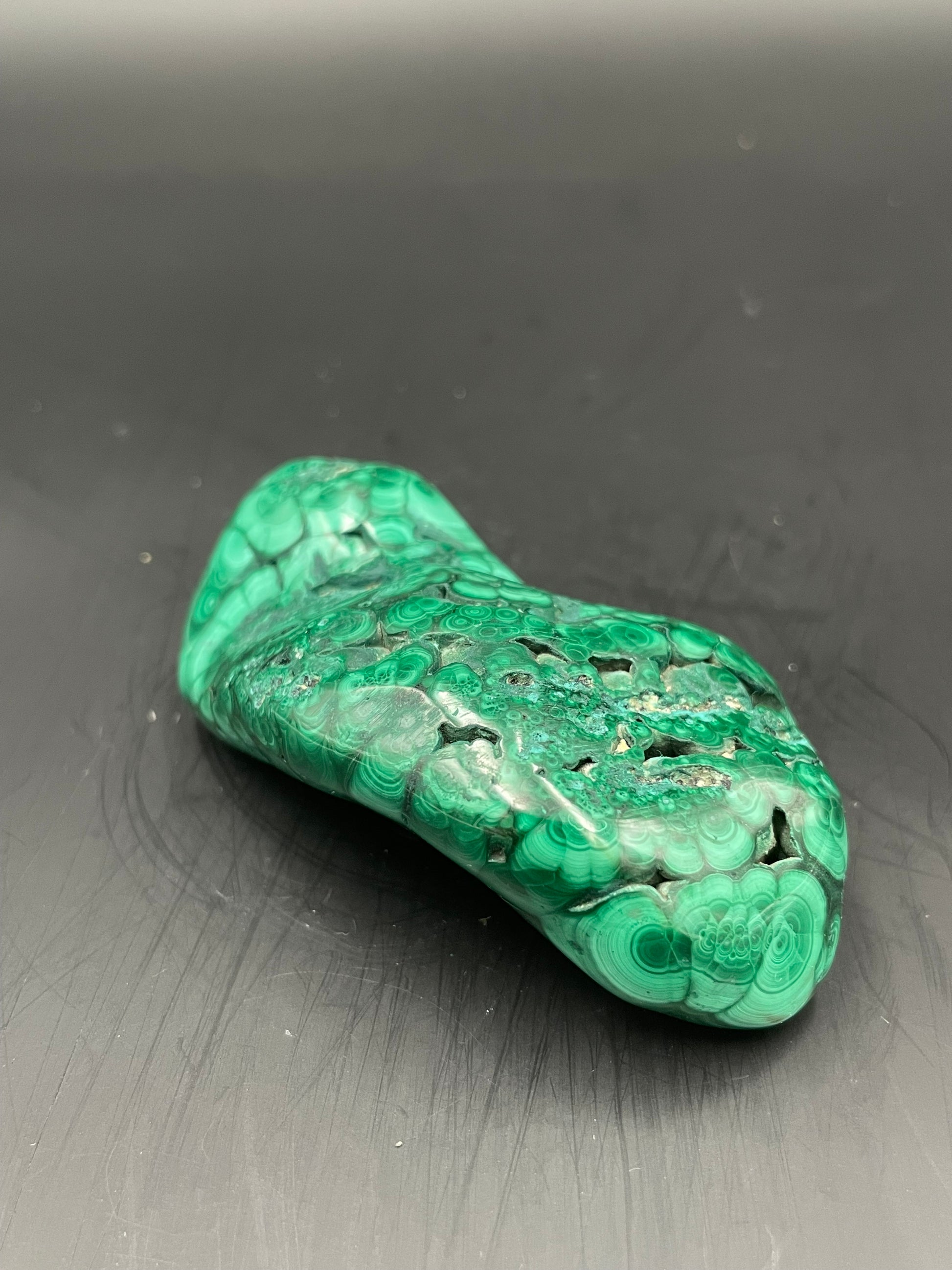 la malachite est particulièrement efficace contre les maux de ventre et notamment les crampes d’estomac et les vomissements. En tant que pierre verte, la malachite se rapporte aux chakras du cœur et est donc une pierre d’espoir, d’harmonie et de douceur, là encore des propriétés fortement féminines, voir maternelles.