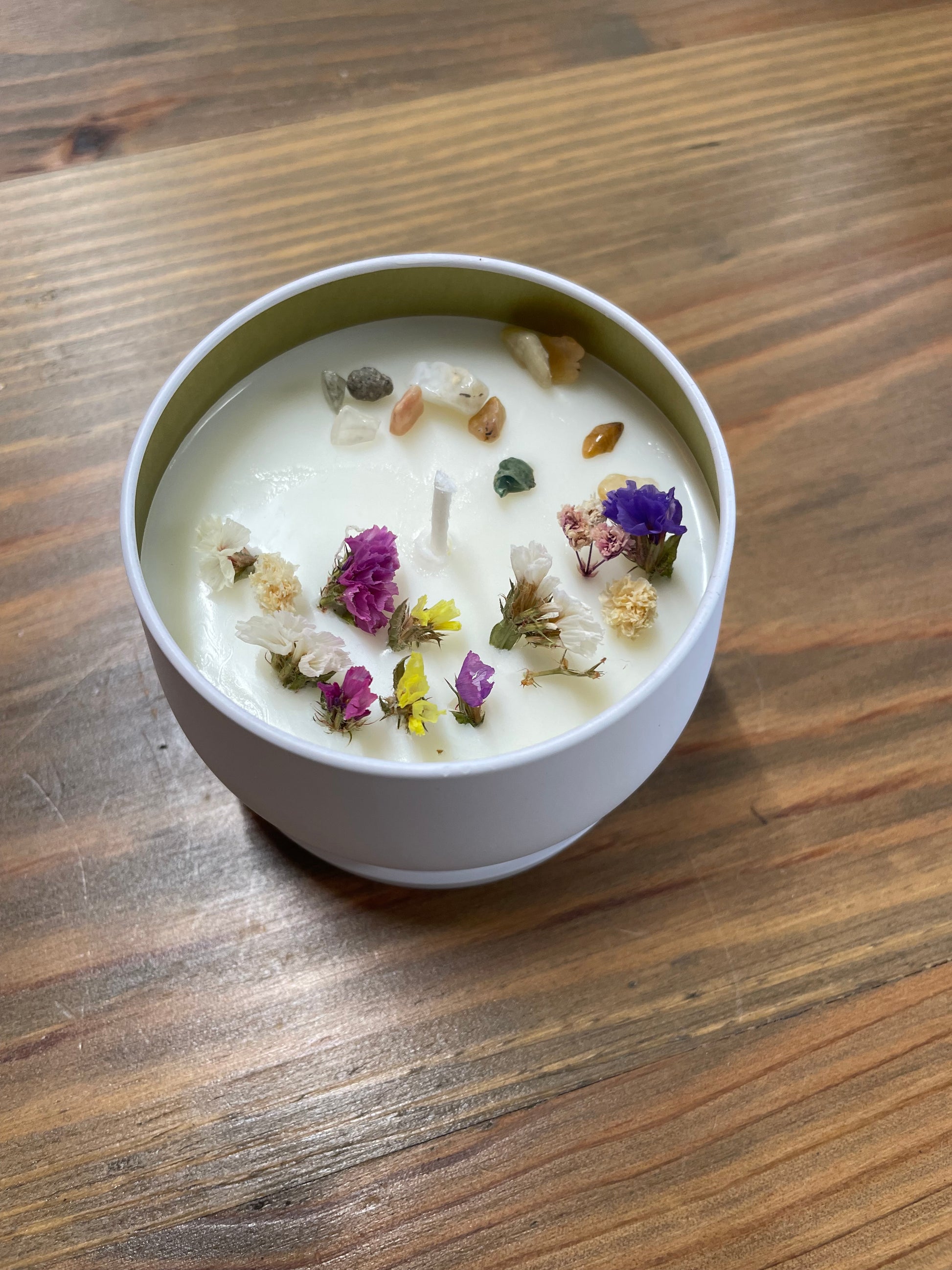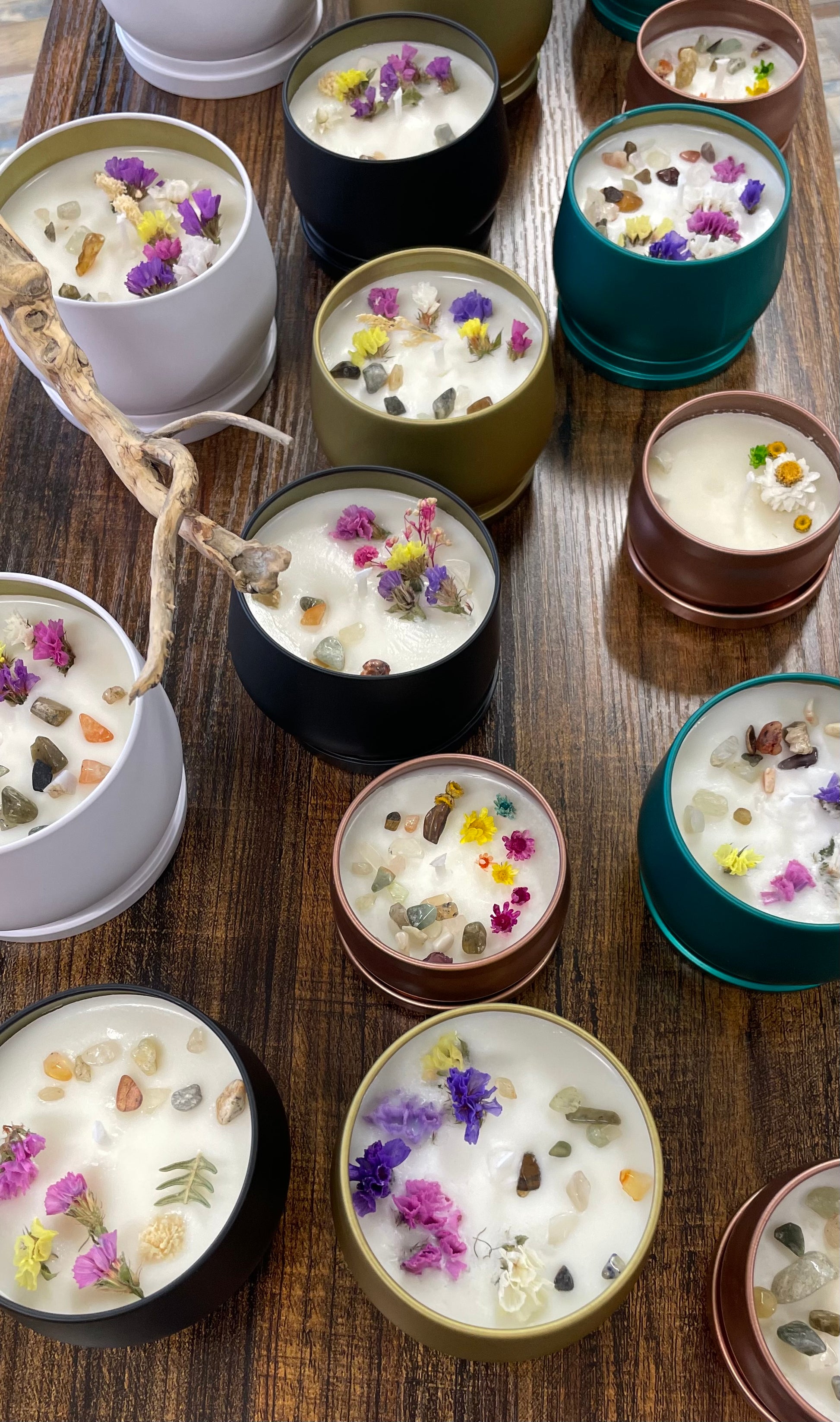 Découvrez les bougies Jardin d'Intention, la continuation parfaite de votre collection Harmonie des Sens. Enrichies des mêmes fragrances envoûtantes, elles offrent une durée de vie prolongée grâce à leur couvercle pratique que vous contrôlez selon vos envies. Chaque création est une œuvre d'art : fleurs et plantes sont disposées avec soin pour composer un tableau unique. Une bougie, une histoire, une ambiance personnalisée qui vous accompagne plus longtemps.